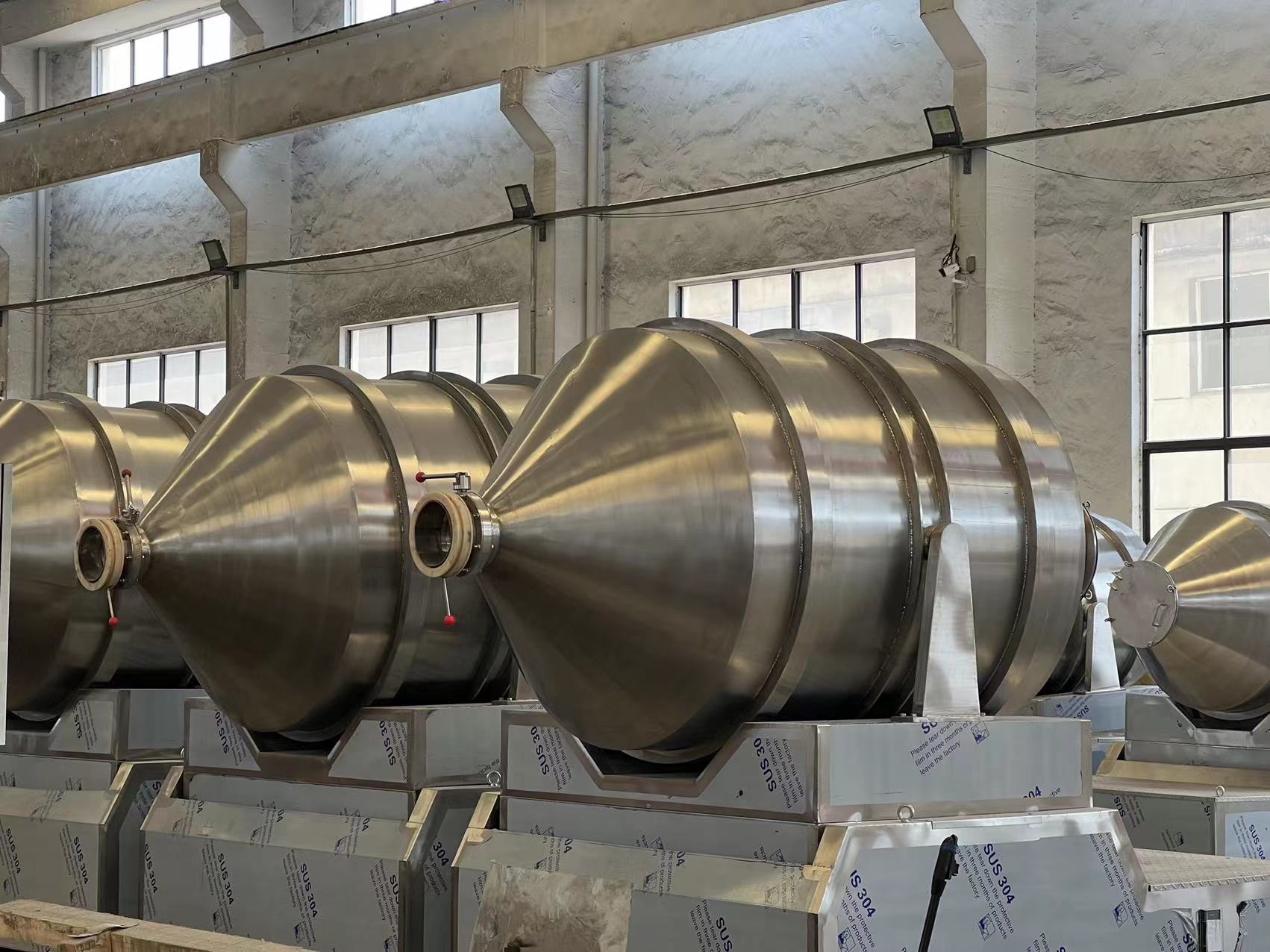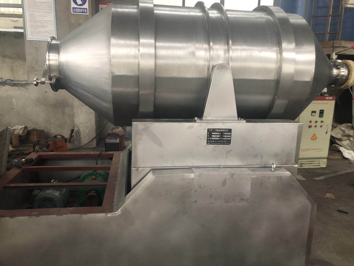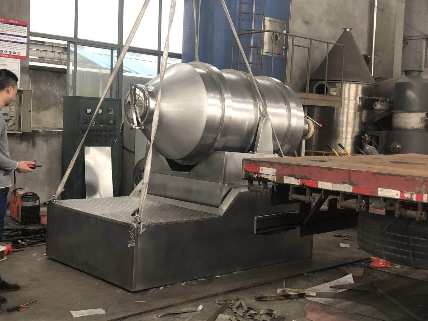EYH 二維運(yùn)動混合機(jī)的轉(zhuǎn)筒可同時進(jìn)行二個運(yùn)動,一個為轉(zhuǎn)筒的轉(zhuǎn)動,另一個為轉(zhuǎn)筒隨擺動架的擺動。被混合物料在轉(zhuǎn)筒內(nèi)隨轉(zhuǎn)筒轉(zhuǎn)動、翻轉(zhuǎn)、混和的同時,又隨轉(zhuǎn)筒的擺動而發(fā)生左右來回的摻混運(yùn)動,在這兩個運(yùn)動的共同作用下,物料在短時間內(nèi)得到充分的混合。EYH二維混料機(jī)適合所有粉、粒狀物料的混合。
