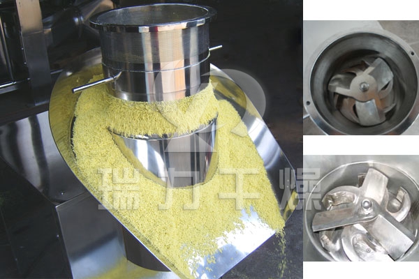 本機(jī)用于制藥、食品、沖劑、化工、固體飲料等行業(yè),將攪拌好的物料制成所需顆粒,特別適用對(duì)粘性較高的物料。