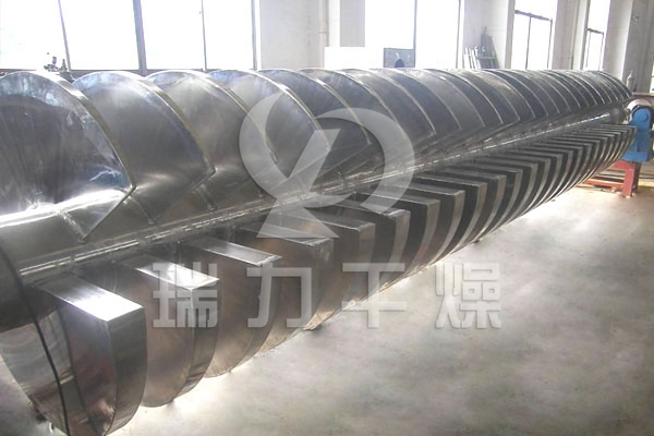 二、 設備原理:高嶺土專用槳葉干燥機的空心軸上密集排列著楔型中空漿葉,熱介質經(jīng)空心軸流經(jīng)漿葉。單位有效容積內(nèi)傳熱面積很大,熱介質溫度從-40℃到320℃,可以是水蒸汽,也可以是液體型:如熱水、導熱油等。間接傳導加熱,沒有攜帶空氣帶走熱量,熱量均用來加熱物料。熱量損失僅為通過器體保溫層向環(huán)境的散熱。楔型漿葉傳熱面具有自清潔功能。物料顆粒與楔型面的相對運動產(chǎn)生洗刷作用,能夠洗刷掉楔型面上附著物料,使運轉中一直保持著清潔的傳熱面。漿葉干燥機的殼體為Ω型,殼體內(nèi)一般安排二到四根空心攪拌軸。殼體有密封端蓋與上蓋,防止物料粉塵外泄而充分發(fā)揮作用。